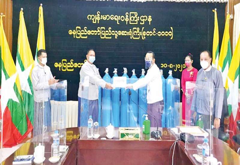 ကိုဗစ်-၁၉ ရောဂါဓာတ်ခွဲအတည်ပြု ပိုးတွေ့လူနာများနှင့် သီးသန့်စောင့် ကြည့်ရမည့်သူများကို ကုသရေးလုပ်ငန်းများ ဆောင်ရွက်ရာတွင် အောက်ဆီဂျင် လိုအပ်ချက်များကို တစ်ဖက်တစ်လမ်းမှ အထောက်အကူပြုစေရန်အတွက် တပ်မတော် နှင့် အလှူရှင်များက အောက်ဆီဂျင်အိုးများ၊ ရောဂါကာကွယ်ရေး အထောက် အကူပြုပစ္စည်းများနှင့် အာဟာရဖြည့်စားသောက်ဖွယ်ရာများကို တိုင်းဒေသကြီးနှင့် ပြည်နယ်အသီးသီးရှိ ပြည်သူ့ဆေးရုံများ၊ တပ်မတော်ဆေးရုံများ၊ ကျန်းမာရေးဌာနများ၊ ကိုဗစ်စင်တာများနှင့် လူမှုကူညီရေး အသင်းအဖွဲ့များသို့ ပေးပို့လှူဒါန်းလျက်ရှိသည်။