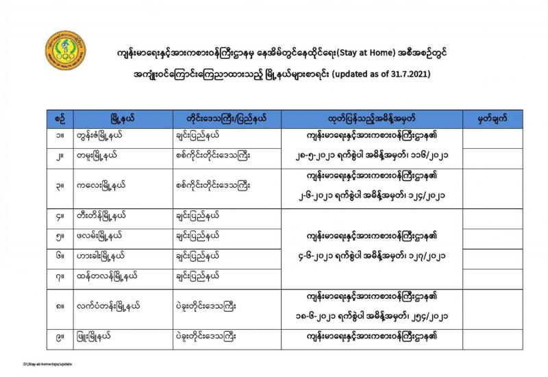 (၂၀၂၁ ခုနှစ်၊ ဇူလိုင်လ (၃၁)ရက်နေ့ နံနက်(၇:၀၀)နာရီအချိန် ထုတ်ပြန်ချက်)