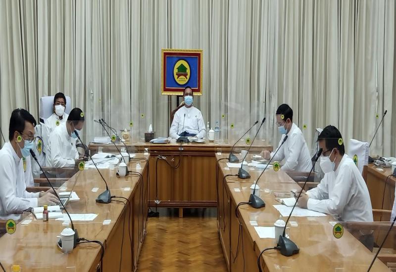 ကိုဗစ် - ၁၉ ရောဂါ ကာကွယ်၊ ထိန်းချုပ်၊ ကုသရေးဆိုင်ရာများတွင် အာဆီယံနိုင်ငံများ၊ မိတ်ဆွေနိုင်ငံများအပါအဝင် နိုင်ငံတကာနှင့် ပူးပေါင်းဆောင်ရွက်မှုများ တိုးမြှင့်လုပ်ဆောင်နိုင်ရေး ညှိနှိုင်းအစည်းအဝေးကို ယနေ့နံနက်ပိုင်းတွင် နေပြည်တော်ရှိ ဘုရင့်နောင်ရိပ်သာ အစည်းအဝေးခန်းမ၌ ကျင်းပပြုလုပ်ရာ နိုင်ငံတော်စီမံအုပ်ချုပ်ရေးကောင်စီ ဥက္ကဋ္ဌ ဗိုလ်ချုပ်မှူးကြီး မင်းအောင်လှိုင် တက်ရောက် အမှာစကားပြောကြားသည်။