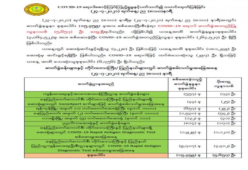 (၂၀၂၁ ခုနှစ်၊ ဇူလိုင်လ (၂၅)ရက်နေ့ နံနက်(၇:၀၀)နာရီအချိန် ထုတ်ပြန်ချက်)