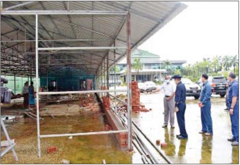 ရန်ကုန်မြို့တော် စည်ပင်သာယာရေးကော်မတီဥက္ကဋ္ဌ မြို့တော်ဝန်ဦးဗိုလ်ဌေးသည် ယနေ့နံနက် ၉ နာရီခွဲတွင် မရမ်းကုန်းမြို့နယ် မြန်မာကွန်ဗင်းရှင်းစင်တာ(MCC) ခန်းမယာဉ်ရပ်နား ရေးကွင်း၌ ကိုဗစ်-၁၉ ရောဂါ သံသယလူနာများထားရှိရန် အဆောင်သစ်ဆောက်လုပ်နေမှုကို သွားရောက်ကြည့်ရှုစစ်ဆေးရာ ရှိုင်းဆောက်လုပ်ရေးကုမ္ပဏီ တာဝန်ရှိသူက အဆောင် သစ်ဆောက်လုပ်နေမှုကို ရှင်းလင်းတင်ပြပြီး မြို့တော်ဝန်က လိုအပ်သည်များ မှာကြား ဖြည့်ဆည်း ဆောင်ရွက်ပေးသည်။