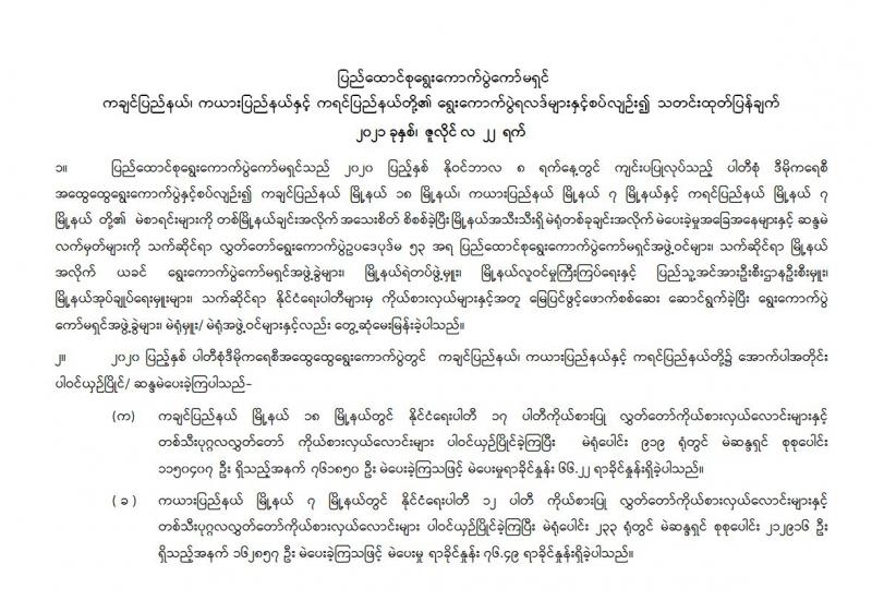 (၂၀၂၁ ခုနှစ်၊ ဇူလိုင်လ (၂၄)ရက်နေ့ ညနေ(၄:၀၀)နာရီအချိန် ထုတ်ပြန်ချက်)