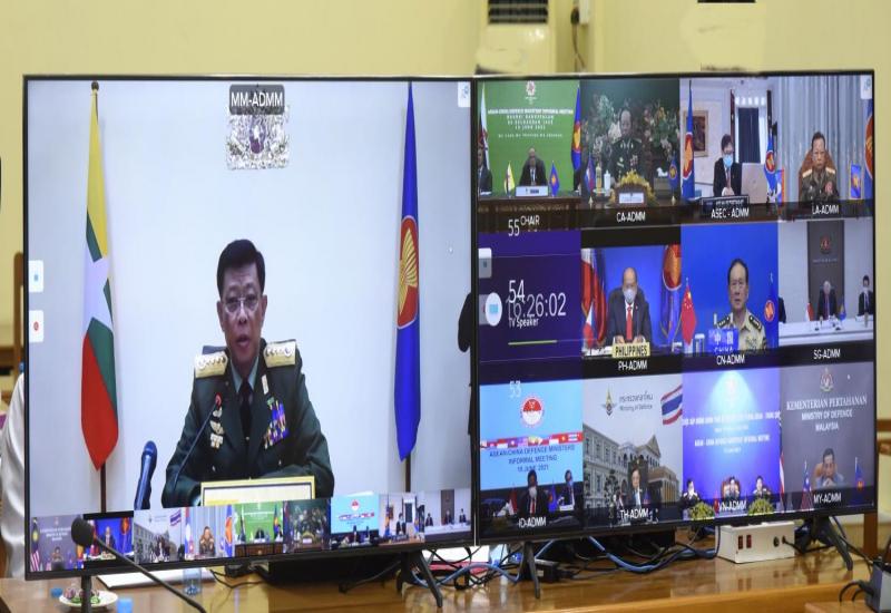 နိုင်ငံတော်စီမံအုပ်ချုပ်ရေး ကောင်စီအဖွဲ့ဝင်၊ ကာကွယ်ရေးဝန်ကြီးဌာန၊ ပြည်ထောင်စုဝန်ကြီး ဗိုလ်ချုပ်ကြီး မြထွန်းဦး ဦးဆောင်သည့် နိုင်ငံတကာနှင့်ပြည်တွင်းရေးရာဦးစီးဌာန၊ ညွှန်ကြားရေးမှူးချုပ် ဗိုလ်မှူးကြီး ငြိမ်းချမ်းနှင့် တာဝန်ရှိသူများသည် ယနေ့တွင် အာဆီယံအလှည့်ကျဥက္ကဋ္ဌ ဘရူနိုင်း ဒါရူဆလာမ်နိုင်ငံက ဦးစီးကျင်းပသည့် (၁၅) ကြိမ်မြောက် အာဆီယံ ကာကွယ်ရေးဝန်ကြီးများ အစည်းအဝေးသို့ Video Conference စနစ်ဖြင့် ကာကွယ်ရေးဝန်ကြီးဌာန၊ ဝန်ကြီးရုံး၊ အစည်းအဝေးခန်းမမှ ပါဝင်တက်ရောက်ကြသည်။