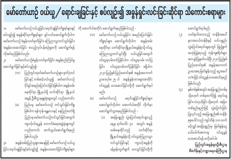 ပြန်ကြားရေးဝန်ကြီးဌာနသည် ပြည်ထောင်စုအစိုးရ၏ သဘောတူညီချက်ဖြင့် ပုံနှိပ်ခြင်းနှင့် ထုတ်ဝေခြင်းလုပ်ငန်းနည်းဥပဒေများကို အမိန့်ကြော်ငြာစာအမှတ် (၄၈/၂၀၁၄)ဖြင့် ၂၀၁၄ ခုနှစ်၊ အောက်တိုဘာလ (၁၀)ရက်နေ့တွင် ထုတ်ပြန်ခဲ့ပြီးနောက် လုပ်ငန်းအသိအမှတ်ပြုလက်မှတ် လျှောက်ထားလာပါက ပုံနှိပ်ခြင်းနှင့်ထုတ်ဝေခြင်းလုပ်ငန်း နည်းဥပဒေများနှင့်အညီစိစစ်၍ လုပ်ငန်း အသိအမှတ်ပြုလက်မှတ်များကို ခွင့်ပြုပေးလျက်ရှိပါသည်။