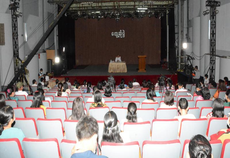 (၂၀၂၁) ပညာသင်နှစ်၌ ဆေးတကသိုလ်များနှင့်ဆေးပညာနှီးနွယ် တကသိုလ်များတွင် ဖွင့်လှစ်မည့် ဘွဲ့လွန်ဆေး ပညာသင်တန်းများ ဝင်ခွင့်အရည်အချင်းစစ်ရေးဖြေစာစစ် ညှိနှိုင်းအစည်း အဝေးကို ယနေ့နံနက်ပိုင်းတွင် ကျန်းမာရေး နှင့်အားကစားဝန်ကြီးဌာန အစည်းအဝေးခန်းမ၌ ကျင်းပ သည်။