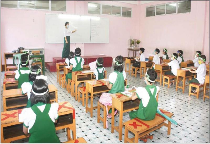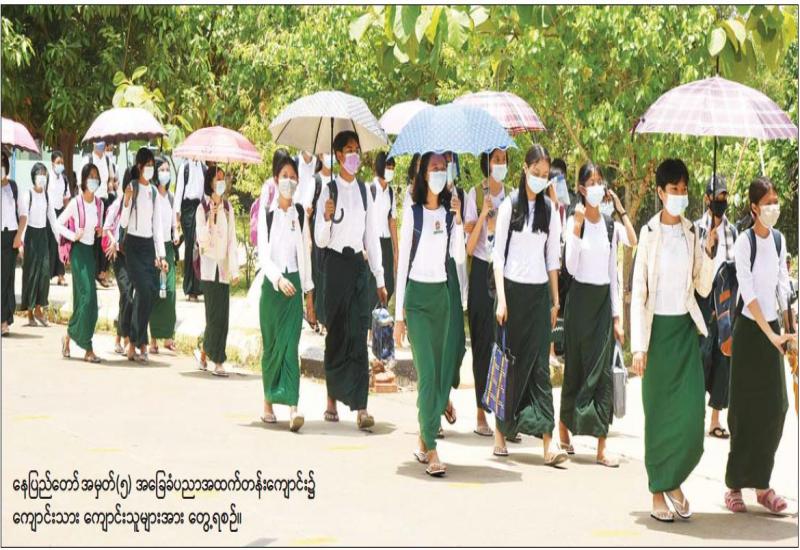 ကိုဗစ်-၁၉ ကူးစက်ကပ်ရောဂါကြောင့် မြန်မာနိုင်ငံရှိ အခြေခံပညာ ကျောင်းများကို ၂၀၂၀-၂၀၂၁ ပညာသင်နှစ်တွင် ပညာသင်ကြားမှုများ ရပ်နားခဲ့ရာမှ ၂၀၂၁-၂၀၂၂ ပညာသင်နှစ်အတွက် အခြေခံပညာအဆင့် ကျောင်းများကို နိုင်ငံတော်က ယနေ့ ပြန်လည်ဖွင့်လှစ်ခဲ့ရာ ကျောင်းသားကျောင်းသူများ စတင်ပညာသင်ကြားလျက်ရှိသည်။