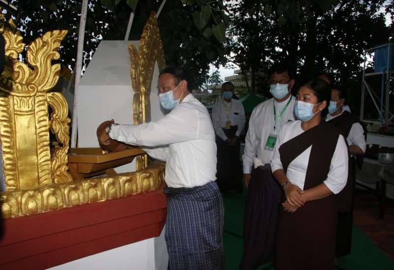 နေပြည်တော်ကောင်စီနယ်မြေ၊ ဇမ္ဗူသီရိမြို့နယ်ရှိ ဓာတုစယဓာတ်ပေါင်းစုစေတီ တော်မြတ်ကြီး ပရဝုဏ်အတွင်း အရှေ့အရပ်ရှိ မဟာဗောဓိညောင်ပင်တော်အား (၁၁)ကြိမ် မြောက် ကဆုန်ညောင်ရေ သွန်းလောင်းပူဇော်ခြင်း မင်္ဂလာအခမ်းအနားနှင့် အကြိမ် (၄၀)မြောက် အသံမစဲမဟာပဌာန်း ရွတ်ဖတ်ပူဇော်ပွဲ အောင်ပွဲမင်္ဂလာ အခမ်းအနားကို ယနေ့နံနက်ပိုင်းက စေတီတော်မြတ်ကြီး ပရဝုဏ်အတွင်း၌ ကျင်းပသည်။