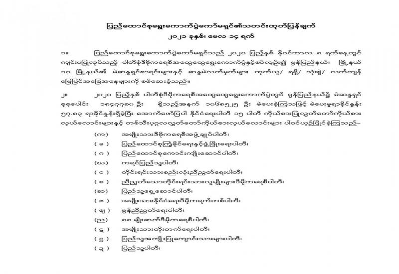 နိုင်ငံတော်၏ မေခရိုစီးပွားရေး အခြေအနေဖြစ်ပေါ်မှု ကိန်းဂဏန်း၊ အချက်အလက်များကို စောင့်ကြည့်လေ့လာသုံးသပ်၍ ကာလတိုနှင့် ကာလလတ်အတွက် ဆောင်ရွက်မည့်အစီအမံများ အကြံပြုတင်ပြနိုင်ရေးနှင့် စပ်လျဉ်းသည့် ညှိနှိုင်းအစည်းဝေး တစ်ရပ်ကို ယနေ့နံနက် ၁၀ နာရီတွင် နေပြည်တော်ရှိ စီမံကိန်းနှင့်ဘဏ္ဍာရေး ဝန်ကြီးဌာန၌ ကျင်းပသည်။