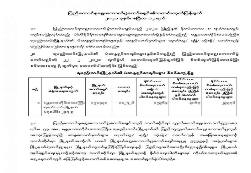 ၁၃။ ပထမဦးစွာ Voice Of MyanmartvOM) သတင်း ဌာနမှ သတင်းထောက် ဦးမောင်မောင်ထွန်းက ( မဲလက်မှတ်များကို မည်သည့်နေရာတွင် ရိုက်နှိပ် ခဲ့ပါသလဲ။ မည်မျှရိုက်နှိပ်ခဲ့ပါသလဲ။ မည်သူတာဝန်ယူ လုပ်ခဲ့ပါ သလဲ။ တင်ဒါပေးခြင်းလား၊ ကော်မရှင်က လုပ်ဆောင်ခြင်းလားဆိုသည်ကို သိလိုကြောင်း မေးမြန်းသည်။
