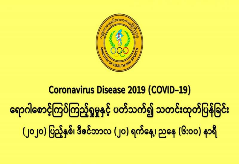 (၁၉-၁၂-၂၀၂၀) ရက်နေ့၊ ည (၈:၀၀) နာရီမှ (၂၀-၁၂-၂၀၂၀) ရက်နေ့၊ ည (၈:၀၀) နာရီ အတွင်း ဓာတ်ခွဲနမူနာ စုစုပေါင်း (၂၀,၅၂၆) ခုအား စစ်ဆေးပြီးစီးခဲ့ရာ COVID-19 ရောဂါ ဓာတ်ခွဲအတည်ပြု လူနာသစ် (၉၄၇) ဦး တွေ့ရှိရပါသည်။