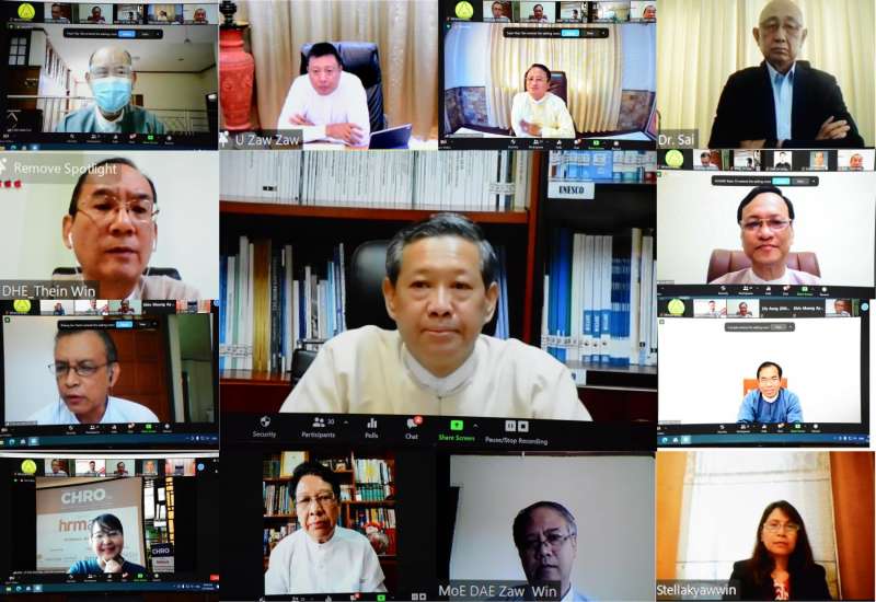 အမျိုးသားပညာရေး မဟာဗျူဟာစီမံကိန်း (၂၀၂၁-၂၀၃၀) (National Education Strategic Plan-NESP 2021-2030) ရေးဆွဲရေးအတွက် Max Myanmar Holdings Co., Ltd နှင့် ဧရာဝတီဘဏ်၊ Loi Hein Group of Companies၊ CB Bank၊ ကမ္ဘောဇဘဏ်လီမိတက်၊ Shwe Taung Group of Companies၊ မြန်မာပြည်လုံးဆိုင်ရာ ပုဂ္ဂလိကကျောင်းများအသင်းတို့မှ နာယက၊ ဥက္ကဋ္ဌများနှင့် တွေ့ဆုံဆွေးနွေးပွဲကို ယနေ့ နံနက် ၉ နာရီတွင် နေပြည်တော်၊ ပညာရေးဝန်ကြီးဌာနမှ ဗီဒီယိုကွန်ဖရင့်စနစ်ဖြင့် ကျင်းပသည်။
