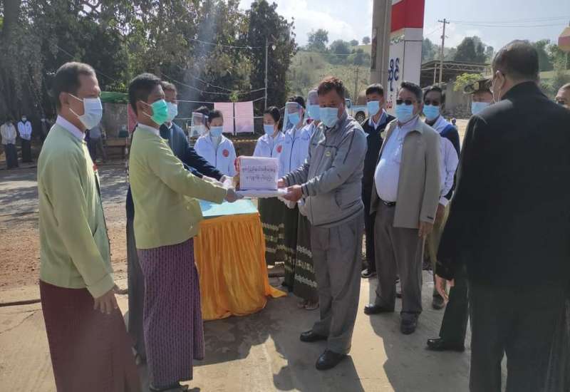 ရှမ်းပြည်နယ် (မြောက်ပိုင်း)၊ ကျောက်မဲမြို့နယ် ၊ ခိုးမုန်းကျေးရွာရှိ ကျန်းမာရေး စစ်ဆေးရေးဂိတ် Check Point-2 ၌ ယနေ့ မွန်းတည့် ၁၂ နာရီ အချိန်ခန့်က ရှမ်းပြည်နယ်ဝန်ကြီးချုပ်ဒေါက်တာလင်းထွဋ်နှင့်အဖွဲ့တို့က မြို့နယ်ကိုဗစ်-၁၉ရောဂါ ထိန်းချုပ်ရေးနှင့် အရေးပေါ်တုံ့ပြန်ရေးကော်မတီသို့ အလှူငွေနှင့် ထောက်ပံ့ပစ္စည်းများ ပေးအပ်ခဲ့ကြောင်း သိရသည်။