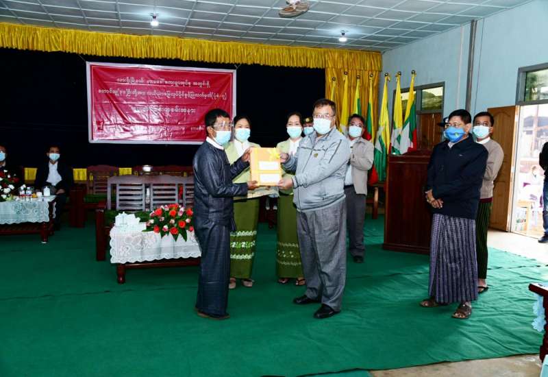 ရှမ်းပြည်နယ်(မြောက်ပိုင်း) လားရှိုးမြို့နယ်၊ နောင်မွန်ကျေးရွာအုပ်စု၊ နားမခေါ်ကျေးရွာအုပ်စု အတွင်းရှိ ဒေသခံတောင်သူများအား လယ်ယာမြေလုပ်ပိုင်ခွင့်ပြု လက်မှတ်(ပုံစံ-၇) ပေးအပ်ခြင်းကို ယနေ့နံနက်(၉)နာရီခွဲက လားရှိုးမြို့နယ် နောင်မွန်ကျေးရွာခန်းမ၌ ကျင်းပသည်။
