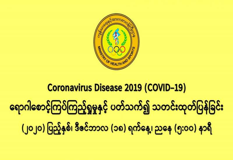 (၁၇-၁၂-၂၀၂၀) ရက်နေ့၊ ည (၈:၀၀) နာရီမှ (၁၈-၁၂-၂၀၂၀) ရက်နေ့၊ ည (၈:၀၀) နာရီ အတွင်း ဓာတ်ခွဲနမူနာ စုစုပေါင်း (၂၄,၅၀၁) ခုအား စစ်ဆေးပြီးစီးခဲ့ရာ COVID-19 ရောဂါ ဓာတ်ခွဲအတည်ပြု လူနာသစ် (၁,၁၁၆) ဦး တွေ့ရှိရပါသည်။