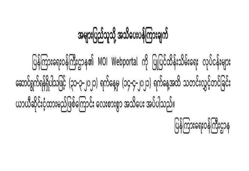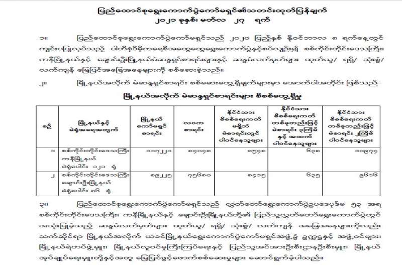 (၂၀၂၁ ခုနှစ်၊ မတ်လ (၂၇)ရက်နေ့ မွန်းလွဲ (၂:၀၀)နာရီအချိန် ထုတ်ပြန်ချက်)
