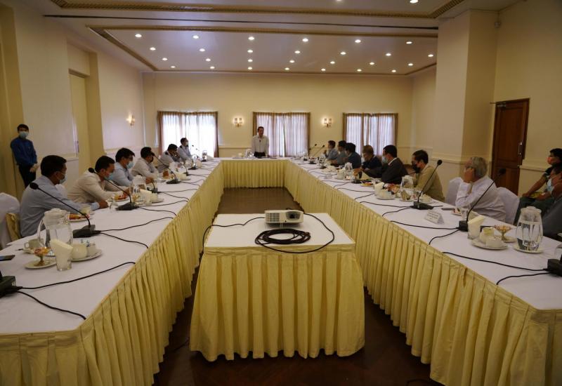 မြန်မာနိုင်ငံ၏ ရေလုပ်ငန်းဖွံ့ဖြိုးတိုးတက်ရေး အတွက် Fish Processing စီးပွားရေး ဇုန်များကို နယ်စပ်တွင် ထူထောင်နိုင်ရေး လုပ်ငန်းညှိနှိုင်းအစည်းအဝေးကို ယနေ့ နံနက်ပိုင်း က စိုက်ပျိုးရေး၊ မွေးမြူရေးနှင့် ဆည်မြောင်းဝန်ကြီးဌာန အစည်းအဝေးခန်းမ၌ ကိုဗစ်-၁၉ ကျန်းမာရေးဆိုင်ရာ ညွှန်ကြားချက်များနှင့်အညီ ကျင်းပသည်။