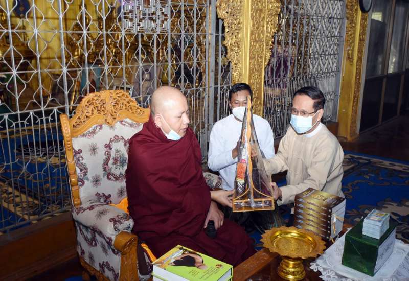 နိုင်ငံတော်သံဃမဟာနာယကအဖွဲ့ဥက္ကဋ္ဌ ဗန်းမော်ကျောင်းတိုက်ဆရာတော်နှင့် ထေရ်ကြီး ဝါကြီးဆရာတော်ကြီးများအား COVID-19 ရောဂါကာကွယ်ဆေး ဒုတိယအကြိမ် ထိုးနှံပေးခြင်း အစီအစဉ်ကို ယနေ့နံနက်ပိုင်း၌ ရန်ကုန်တိုင်းဒေသကြီး မရမ်းကုန်းမြို့နယ် သိရီမင်္ဂလာ ကမ္ဘာ့အေးကုန်းမြေရှိ နိုင်ငံတော်သံဃမဟာနာယက အဖွဲ့ ဘုရားခန်း၌ ပြုလုပ်သည်။