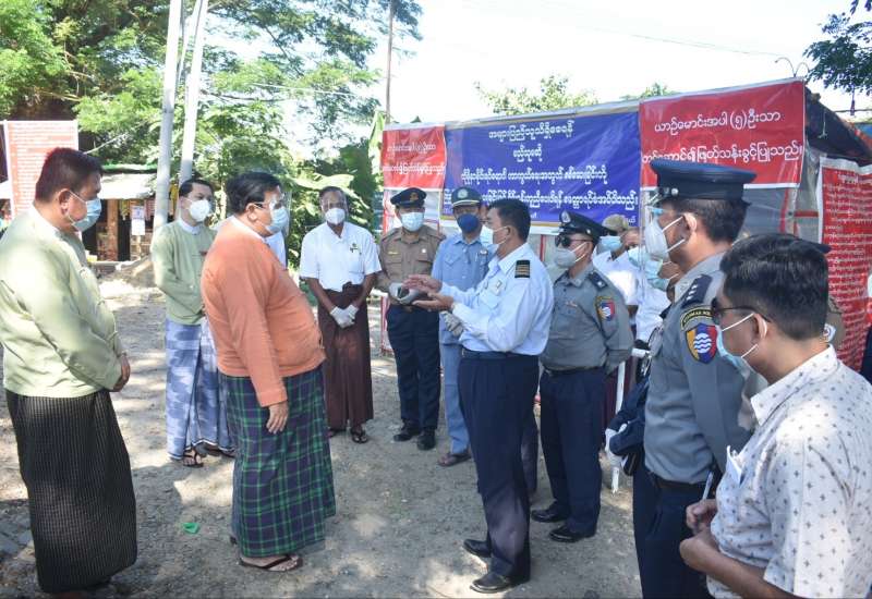 ဧရာဝတီတိုင်းဒေသကြီးအစိုးရအဖွဲ့ ဝန်ကြီးချုပ် ဦးလှမိုးအောင်နှင့်တာဝန်ရှိသူများက ယမန်နေ့ နေ့လယ် ၃ နာရီက မြန်အောင်မြို့အဝင် သပြေလှ စုပေါင်းစစ်ဆေးရေးဂိတ်အား ကြည့်ရှုစစ်ဆေး၍ ထောက်ပံ့ငွေများ ပေးအပ်ခဲ့သည်။