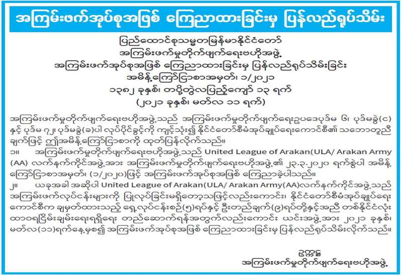 (၂၀၂၁ ခုနှစ်၊ မတ်လ (၁၀)ရက်နေ့ မွန်းလွဲ (၂:၀၀)နာရီအချိန် ထုတ်ပြန်ချက်)