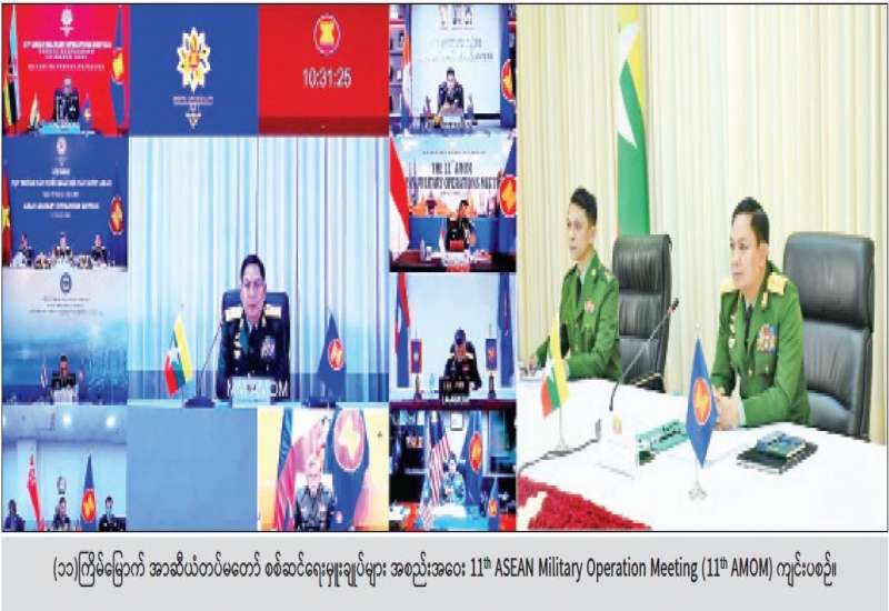 (၁၁)ကြိမ်မြောက် အာဆီယံတပ်မတော်စစ်ဆင်ရေး မှူးချုပ်များ အစည်းအဝေး 11th ASEAN Military Operation Meeting (11th AMOM) Online Video Conferencing စနစ်ဖြင့် ယနေ့ နံနက်ပိုင်းတွင် ပြုလုပ်သည်။