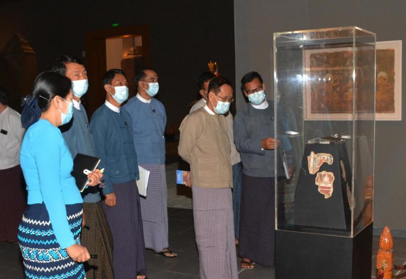 သာသနာရေးနှင့်ယဉ်ကျေးမှုဝန်ကြီးဌာန ပြည်ထောင်စုဝန်ကြီး ဦးကိုကိုသည် ယနေ့ နံနက် ၁၀ နာရီတွင် အမျိုးသားပြတိုက်(နေပြည်တော်) အတွင်း ခင်းကျင်းပြသထားမှု များကို ကြည့်ရှု စစ်ဆေးသည်။