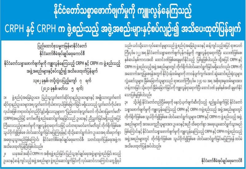 နိုင်ငံတော်အစိုးရအနေဖြင့် နိုင်ငံတော် တည်ငြိမ်လုံခြုံအေးချမ်းသာယာရေးအတွက် ကြိုးပမ်း ဆောင်ရွက်လျက်ရှိရာတွင် တစ်ဦးတစ်ယောက်၊ တစ်ပါတီအဖွဲ့အစည်းအတွက် ဦးတည်ရည်မှန်းချက် ထားကာ နိုင်ငံတော်အား နည်းမျိုးစုံအသုံးပြုဆန့်ကျင်လှုပ်ရှားနေသူများကို နိုင်ငံတော်နှင့် ပြည်သူ လူထု အကျိုးစီးပွား အတွက် တရားဥပဒေစိုးမိုးရေးလုပ်ငန်းများကို ထိထိရောက်ရောက် ဆောင်ရွက်နိုင်ရေး လုံခြုံရေး တပ်ဖွဲ့ဝင် များအနေဖြင့် ဆက်လက်ကြိုးပမ်း ဆောင်ရွက်သွားမည်ဖြစ်ကြောင်း မြန်မာနိုင်ငံ ရဲ တပ်ဖွဲ့က သတင်း ထုတ်ပြန် ထားသည်။