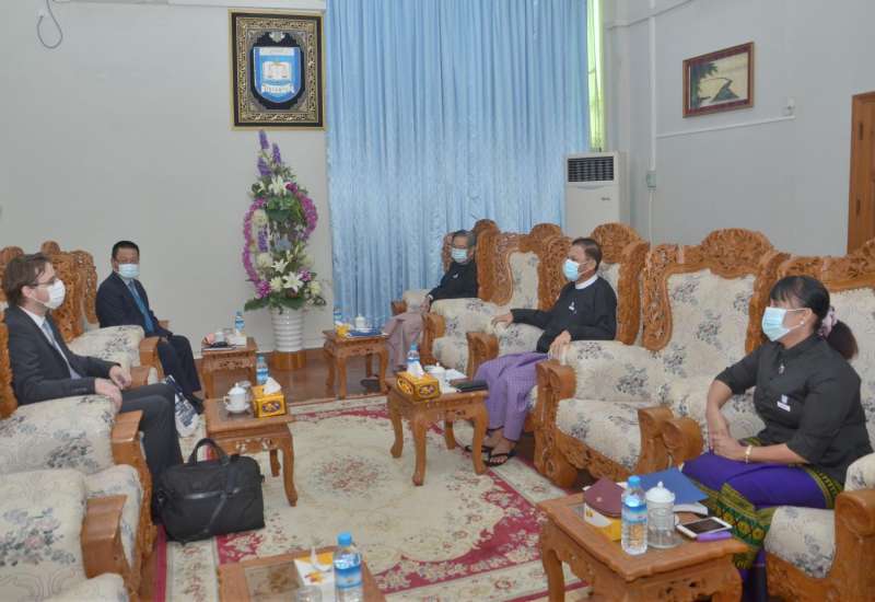 ပြည်ထောင်စုရှေ့နေချုပ် ဦးထွန်းထွန်းဦးသည် UNODC မှ Country Manager, Mr. Benedikt Hofmann နှင့်အဖွဲ့ကို ယနေ့ နံနက် ၁၁ နာရီခွဲတွင် ပြည်ထောင်စုရှေ့နေချုပ်ရုံး ဧည့်ခန်းမ၌ လက်ခံတွေ့ဆုံသည်။