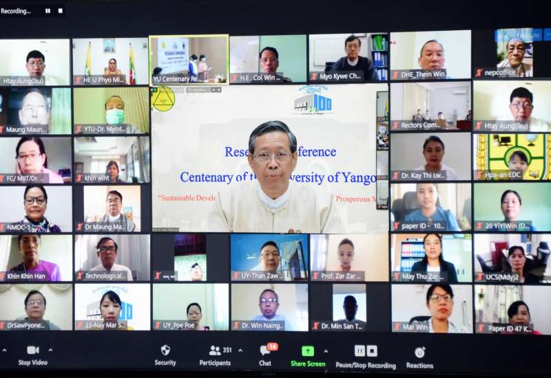 Sustainable Development Goals to Transform Peaceful and Prosperous Myanmar ခေါင်းစဉ်ဖြင့် ကျင်းပသည့် ရန်ကုန်တက္ကသိုလ် နှစ်(၁၀၀)ပြည့် ရာပြည့်အထိမ်း အမှတ် သုတေသနစာတမ်းဖတ်ပွဲ အခမ်းအနားကို ယနေ့နံနက် ၉ နာရီတွင် ရန်ကုန် တက္ကသိုလ် သုတေသနစင်တာ၌ ဗီဒီယိုကွန်ဖရင့်စနစ်ဖြင့် ကျင်းပသည်။