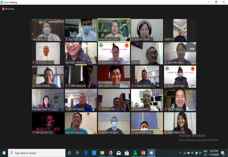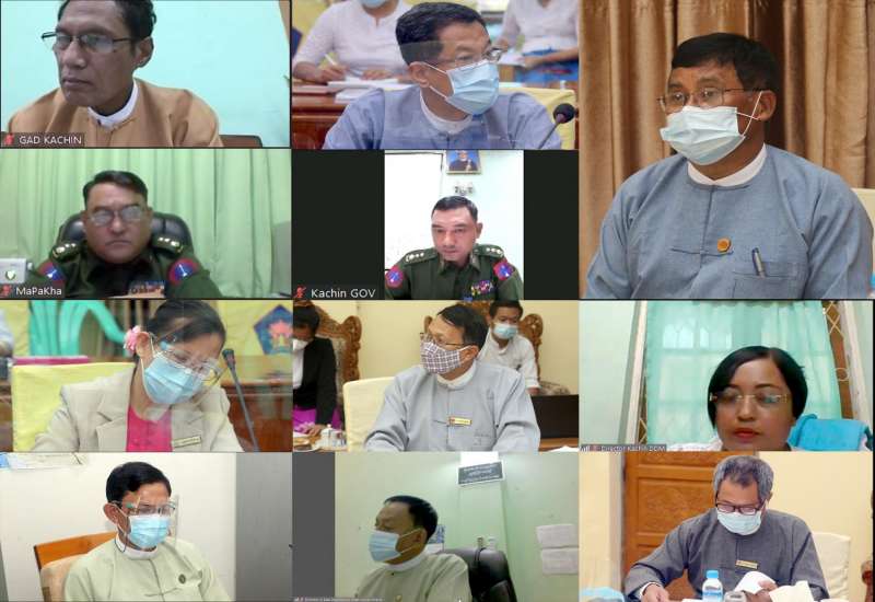 ကချင်ပြည်နယ်အတွင်းရှိ နေရပ်စွန့်ခွာရသူများ (IDPs) ပြန်လည်နေရာချထားမှု အကောင်အထည်ဖော်ရေးဆိုင်ရာ လုပ်ငန်းအဖွဲ့ ညှိနှိုင်းအစည်းအဝေးကို ယမန်နေ့ ညနေ ပိုင်းတွင် ဗီဒီယိုကွန်ဖရင့်ဖြင့်ကျင်းပသည်။