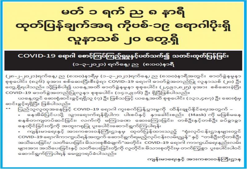 မိုးလေဝသနှင့်ဇလဗေဒညွှန်ကြားမှုဦးစီးဌာနမှ (၂၀၂၁ ခုနှစ်၊ မတ်လ (၂)ရက်နေ့ မွန်းလွဲ (၂:၀၀)နာရီအချိန် ထုတ်ပြန်ချက်)