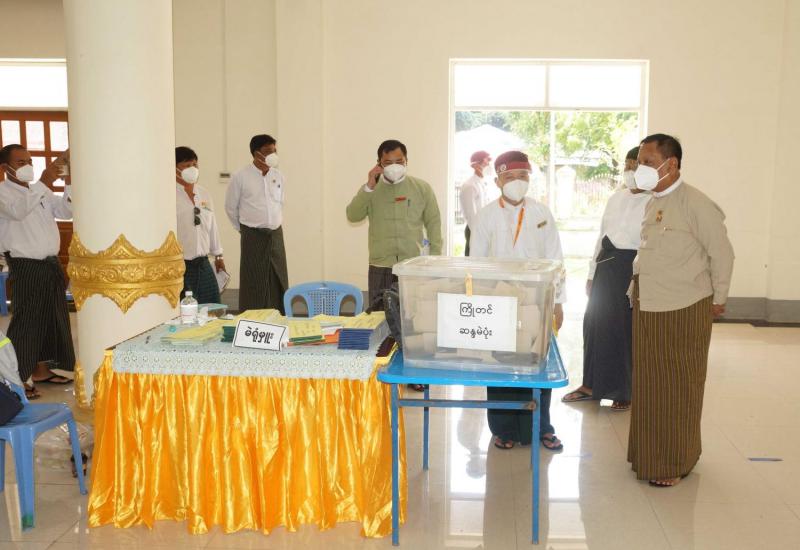 ပြည်ထောင်စုရွေးကောက်ပွဲကော်မရှင်ဥက္ကဋ္ဌ ဦးလှသိန်းသည် ယနေ့နံနက် ၉ နာရီတွင် ဇမ္ဗူသီရိမြို့နယ်၊ ဇေယျ သိဒ္ဓိရပ်ကွက် အ.ထ.က (၅) ရှိ မဲရုံအမှတ် (၁)၊ အမှတ်(၂)၊ ပျဉ်းမနားမြို့နယ်၊ ရွာကောက်ရပ်ကွက်ရှိ မဲရုံ အမှတ်(၂) နှင့် ဥတ္တရသီရိမြို့နယ်၊ ဥတ္တရသီရိရပ်ကွက်ရှိ မဲရုံအမှတ်(၁) အ.မ.က (ချင်းရွာ)များသို့ သွားရောက်၍ မဲဆန္ဒရှင် ပြည်သူများ ဆန္ဒမဲပေးနေမှုကို ကြည့်ရှုစစ်ဆေးသည်။