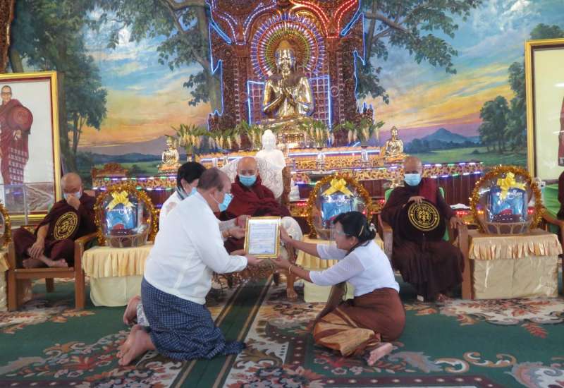 ရခိုင်ပြည်နယ်နှင့် ရန်ကုန်တိုင်းဒေသကြီးအတွင်း ကိုဗစ်-၁၉ ရောဂါ ကာကွယ်၊ ထိန်းချုပ်၊ ကုသရေး လုပ်ငန်းများတွင် အသုံးပြုရန် အလှူငွေနှင့် လိုအပ်သောပစ္စည်းများ လှူဒါန်းခြင်းကို ယနေ့ နံနက်ပိုင်း၌ ရန်ကုန်တိုင်းဒေသကြီးအစိုးရအဖွဲ့ရုံး မင်္ဂလာခန်းမ၌ ကျင်းပသည်။