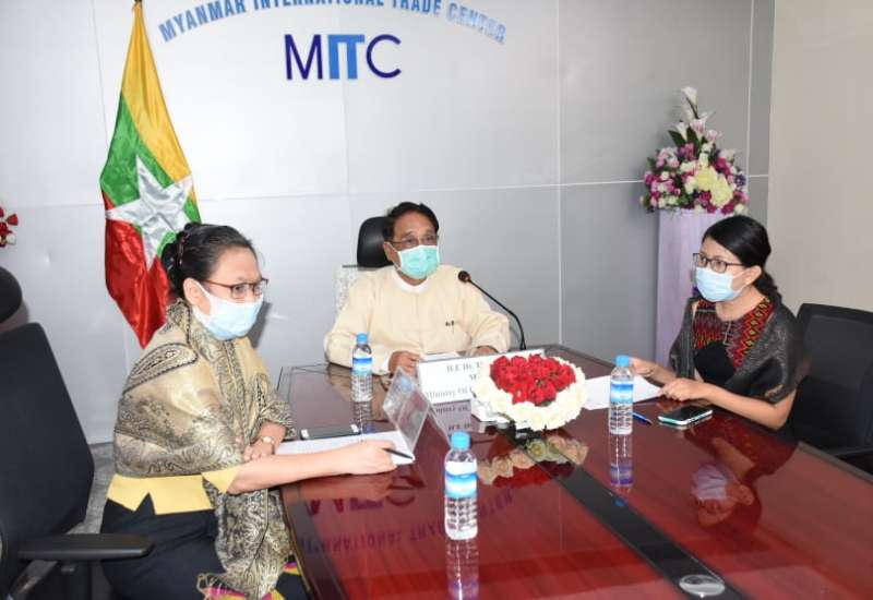 အာဆီယံစီးပွားရေးဝန်ကြီးများနှင့် အာဆီယံစီးပွားရေး အကြံပေးကောင်စီတို့၏ တွေ့ဆုံပွဲကို ယနေ့မွန်းလွဲပိုင်းက ရင်းနှီးမြှုပ်နှံမှုနှင့် နိုင်ငံခြားစီးပွား ဆက်သွယ်ရေးဝန်ကြီးဌာန အစည်းအဝေးခန်းမမှ Video Conferencing စနစ်ဖြင့် ကျင်းပသည်။