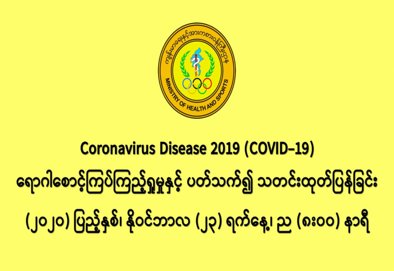 (၂၂-၁၁-၂၀၂၀) ရက်နေ့၊ ည (၈:၀၀) နာရီမှ (၂၃-၁၁-၂၀၂၀) ရက်နေ့၊ ည (၈:၀၀) နာရီ အတွင်း ဓာတ်ခွဲနမူနာ စုစုပေါင်း (၁၈,၂၁၂) ခုအား စစ်ဆေးပြီးစီးခဲ့ရာ COVID-19 ရောဂါ ဓာတ်ခွဲအတည်ပြု လူနာသစ် (၁,၂၅၉) ဦး တွေ့ရှိရပါသည်။