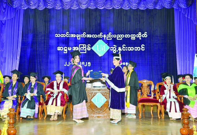 သတင်းအချက်အလက်နည်းပညာတက္ကသိုလ်၏ ဆဋ္ဌမအကြိမ် ဘွဲ့နှင်းသဘင်အခမ်းအနားကို ယနေ့နံနက်ပိုင်းက ရန်ကုန်တက္ကသိုလ်ဘွဲ့နှင်း သဘင်ခန်းမ၌ ကျင်းပသည်။