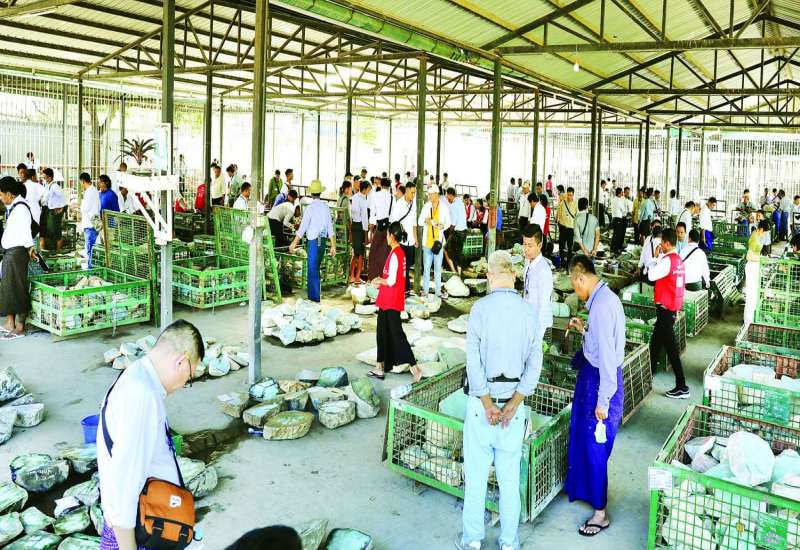 ၂၀၂၅ ခုနှစ် အကြိမ်(၆၀)မြောက် မြန်မာ့ကျောက်မျက်ရတနာပြပွဲ စတုတ္ထနေ့ကို ယနေ့နံနက်ပိုင်းတွင် နေပြည်တော်ရှိ မဏိရတနာကျောက်စိမ်းခန်းမ၌ ဆက်လက်ကျင်းပရာ နံနက်ပိုင်းမှစတင်၍ ပြည်တွင်း၊ ပြည်ပရတနာကုန်သည်များသည် မဏိရတနာကျောက်စိမ်း ခန်းမအတွင်းနှင့် ခန်းမအပြင်ဘက် သတ်မှတ် နေရာများအလိုက် ခင်းကျင်းပြသထားသည့် ကျောက်စိမ်းအတွဲများကို စိတ်ကြိုက်လေ့လာကြည့်ရှုကြသည်။