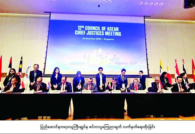 ပြည်ထောင်စုတရားသူကြီးချုပ် ဦးသာဌေးဦးဆောင်သည့် မြန်မာကိုယ်စားလှယ်အဖွဲ့သည် စင်ကာပူနိုင်ငံ တရားလွှတ်တော်ချုပ် တရားသူကြီးချုပ် The Hon. Sundaresh Menon ၏ ဖိတ်ကြားချက်အရ နိုဝင်ဘာ ၁၃ ရက်မှ ၁၅ ရက်အထိ စင်ကာပူနိုင်ငံတွင် ကျင်းပသည့် “(၁၂) ကြိမ်မြောက် အာဆီယံတရားသူကြီးချုပ်များ ကောင်စီအစည်းအဝေး” သို့ တက်ရောက်သည်။