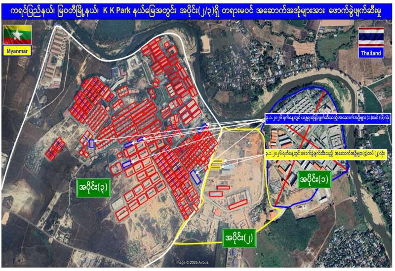 မြန်မာနိုင်ငံအစိုးရအနေဖြင့် အွန်လိုင်းလိမ်လည်လောင်းကစားမှုများ အများဆုံးအခြေချလုပ်ကိုင်လျက်ရှိကြသည့် ရွှေကုက္ကိုလ်နယ်မြေနှင့် KK Park နယ်မြေများရှိ တရားမဝင်အဆောက်အအုံများအတွင်း ဝင်ရောက်ရှင်းလင်း၍ အွန်လိုင်းလိမ်လည်လောင်းကစားမှုလုပ်ငန်းစဉ်များတွင် အသုံးပြုခဲ့သည့် သိမ်းဆည်းရမိပစ္စည်းများအား စနစ်တကျဖျက်ဆီးခြင်းနှင့် တရားမဝင်အဆောက်အအုံများအား စနစ်တကျဖြိုချ ဖျက်ဆီးခြင်းများကို အဖွဲ့စုံပါဝင်သည့် ပူးပေါင်းအဖွဲ့ဖြင့် ဆောင်ရွက်လျက်ရှိရာ ယနေ့တွင်လည်း KK Park နယ်မြေအတွင်းရှိ တရားမဝင်အဆောက်အအုံ ၈ လုံးကို ထပ်မံဖြိုချ ဖျက်ဆီးခဲ့ကြောင်း သိရှိရသည်။