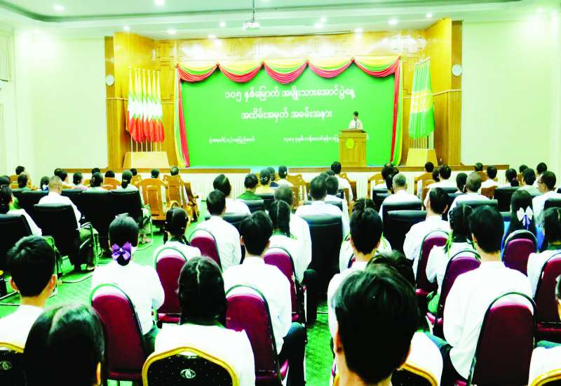 ၂၀၂၅-၂၀၂၆ ပညာသင်နှစ် အခြေခံပညာမူလတန်းနှင့် အလယ်တန်းအဆင့် အင်္ဂလိပ်စာစွမ်းရည်ပြိုင်ပွဲနှင့် သင်္ချာစွမ်းရည်ပြိုင်ပွဲ(ဗဟိုအဆင့်) ဂုဏ်ပြုဆုချီးမြှင့်ပွဲကို ယနေ့နံနက်ပိုင်းတွင် နေပြည်တော်ရုံးအမှတ်(၁၃) ပညာရေးဝန်ကြီးဌာန အစည်းအဝေးခန်းမ၌ ကျင်းပသည်။