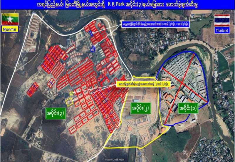 မြန်မာနိုင်ငံအစိုးရအနေဖြင့် အွန်လိုင်းလိမ်လည်လောင်းကစားမှုများ အများဆုံးအခြေချလုပ်ကိုင်လျက်ရှိကြသည့် ရွှေကုက္ကိုလ်နယ်မြေနှင့် KK Park နယ်မြေများရှိ တရားမဝင်အဆောက်အအုံများအတွင်း ဝင်ရောက်ရှင်းလင်းခြင်း၊ အွန်လိုင်းလိမ်လည်လောင်းကစားမှုလုပ်ငန်းစဉ်များတွင်အသုံးပြုခဲ့သည့် သိမ်းဆည်းရမိပစ္စည်းများနှင့် တရားမဝင်အဆောက်အအုံများအား စနစ်တကျဖြိုချဖျက်ဆီးခြင်းများကို လုံခြုံရေးတပ်ဖွဲ့ဝင်များ၊ အုပ်ချုပ်ရေးအဖွဲ့အစည်းများနှင့် ဒေသတွင်းတာဝန်ရှိသူများအပါအဝင် အဖွဲ့စုံပါဝင်သည့် ပူးပေါင်းအဖွဲ့ဖြင့် ဆောင်ရွက်လျက်ရှိရာ ယနေ့တွင် KK Park နယ်မြေအတွင်းရှိ တရားမဝင်အဆောက်အအုံ ၆ လုံးကို ထပ်မံဖြိုချဖျက်ဆီးခဲ့ကြောင်း သိရှိရသည်။