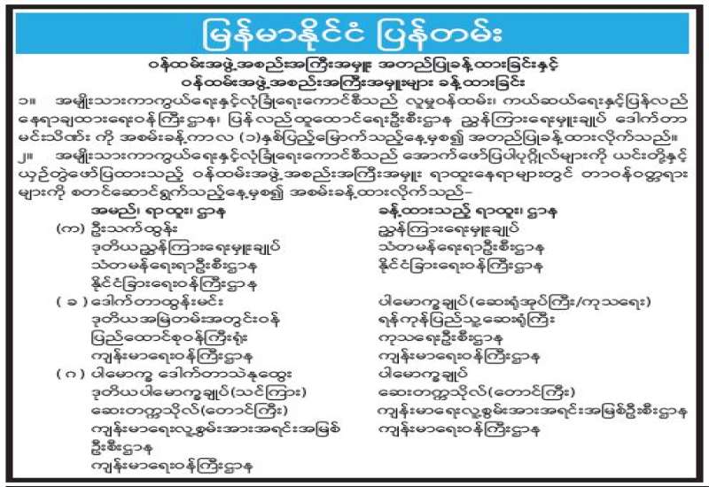 ရန်ကုန်မြို့နှင့် မန္တလေးမြို့အတွက် ရည်ညွှန်းလက်ကားဈေးနှုန်းများနှင့် ပြည်ထောင်စုနယ်မြေ နေပြည်တော်၊ တိုင်းဒေသကြီး/ပြည်နယ် မြို့တော်များအတွက် ရည်ညွှန်းလက်လီဈေးနှုန်းများ