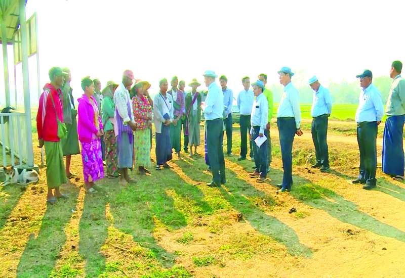 စိုက်ပျိုးရေး၊ မွေးမြူရေးနှင့်ဆည်မြောင်းဝန်ကြီးဌာန ဒုတိယဝန်ကြီး ဦးဗိုလ်ဗိုလ်ကျော်သည် တာဝန်ရှိသူများနှင့်အတူ ယနေ့နံနက်ပိုင်းက တပ်ကုန်းမြို့နယ်ရှိ ဆင်သေဆည်ရေသောက်စနစ် လက်ဝဲ/လက်ယာ တူးမြောင်းစနစ်များမှ နွေစပါးနှင့် နွေသီးနှံ စိုက်ပျိုးရေပေးဝေနေမှုအခြေအနေကို ကွင်းဆင်းကြည့်ရှုစစ်ဆေးသည်။