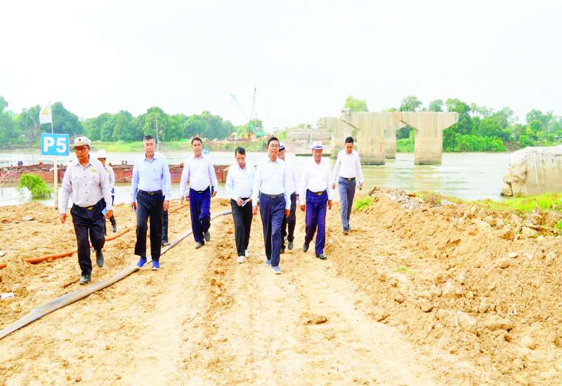 အဆောက်အအုံများ ပြန်လည်ပြုပြင်အသုံးပြုရေးနှင့် အသစ်တည်ဆောက်ရေး ကြီးကြပ်မှုကော်မတီဥက္ကဋ္ဌ ဆောက်လုပ်ရေးဝန်ကြီးဌာန ပြည်ထောင်စုဝန်ကြီး ဦးမျိုးသန့်သည် တာဝန်ရှိသူများနှင့်အတူ ယနေ့တွင် ရန်ကုန်-မန္တလေး အမြန်လမ်း (မန္တလေး-နေပြည်တော်အပိုင်း) မိုင်တိုင် (၃၅၈/၁)တွင် ငလျင်ဒဏ်ကြောင့် ပျက်စီးသွားသော ဒုဋ္ဌဝတီတံတားအသစ် ပြန်လည်တည်ဆောက်နေမှုကို ကြည့်ရှုစစ်ဆေးသည်။