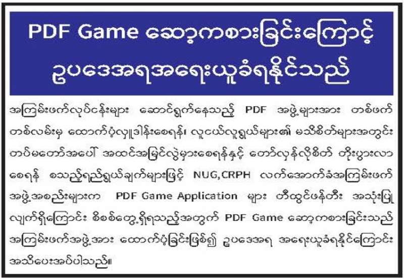 PDF Game ဆော့ကစားခြင်းကြောင့် ဥပဒေအရအရေးယူခံရနိုင်သည်