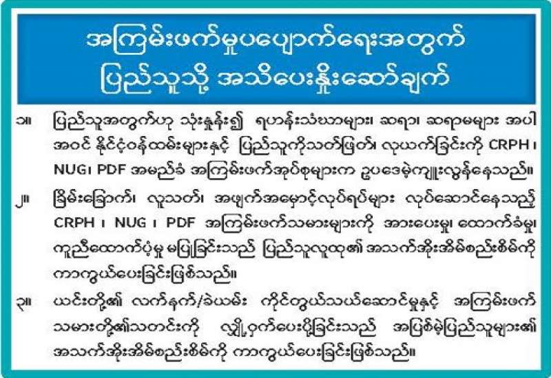 အကြမ်းဖက်မှုပပျောက်ရေးအတွက် ပြည်သူသို့ အသိပေးနှိုးဆော်ချက်