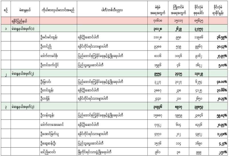 ၂၀၂၅ ခုနှစ် ပါတီစုံဒီမိုကရေစီအထွေထွေရွေးကောက်ပွဲ တိုင်းဒေသကြီးလွှတ်တော် သို့မဟုတ် ပြည်နယ်လွှတ်တော် တိုင်းရင်းသားလူမျိုးလွှတ်တော်ကိုယ်စားလှယ်လောင်းတစ်ဦးချင်း ဆန္ဒမဲရရှိမှုအခြေအနေ