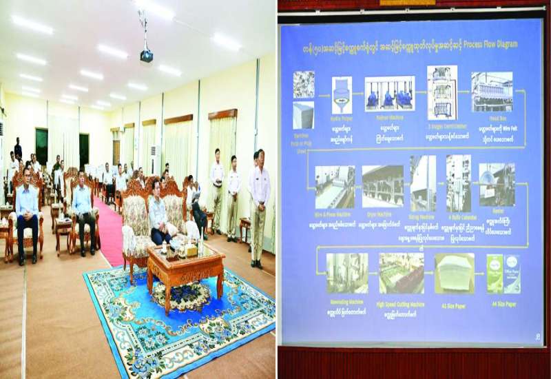 နိုင်ငံတော်လုံခြုံရေးနှင့်အေးချမ်းသာယာရေးကော်မရှင်ဥက္ကဋ္ဌ တပ်မတော်ကာကွယ်ရေးဦးစီးချုပ် ဗိုလ်ချုပ်မှူးကြီး မင်းအောင်လှိုင်သည် ခရီးစဉ်တွင်လိုက်ပါလာသည့် အဖွဲ့ဝင်များလိုက်ပါ၍ ယနေ့ညနေပိုင်းတွင် မြန်မာစီးပွားရေးကော်ပိုရေးရှင်း စက္ကူစက်ရုံ (သာပေါင်း)သို့ သွားရောက်ကြည့်ရှုစစ်ဆေးသည်။