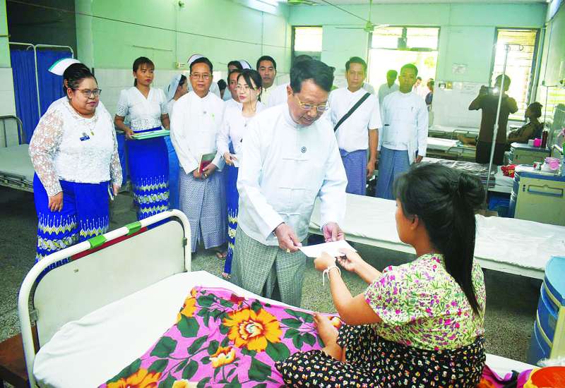 အလုပ်သမားဝန်ကြီးဌာန ပြည်ထောင်စုဝန်ကြီး ဦးခင်မောင်စိုးသည် ယနေ့မွန်းလွဲပိုင်းတွင် ရန်ကုန်တိုင်းဒေသကြီး တာမွေမြို့နယ်ရှိ အလုပ်သမားဆေးရုံကြီး (ရန်ကုန်) သို့သွားရောက်၍ ဆေးရုံတက်ရောက်ကုသနေသော အာမခံအလုပ်သမားများကို ကြည့်ရှုအားပေးသည်။