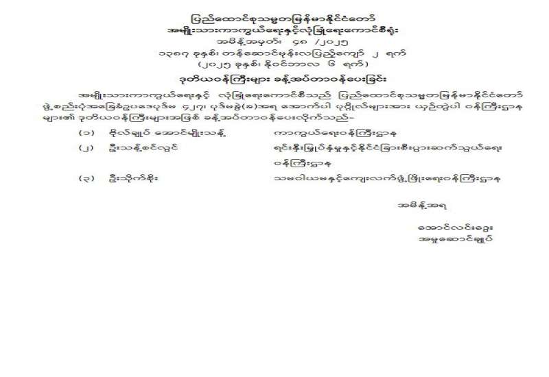 ဒုတိယဝန်ကြီးများ ခန့်အပ်တာဝန်ပေးခြင်း