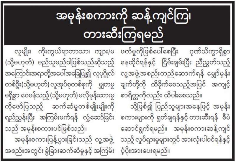 အမုန်းစကားကို ဆန့်ကျင်ကြ၊ တားဆီးကြရမည်